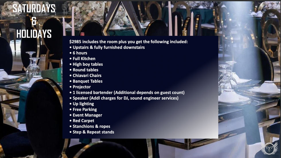 Upstairs features high ceilings, natural light, and soft white velvet drapes—perfect for elegant, open gatherings. Downstairs, experience a bold all-black room and a sleek all-white room, both fully furnished with luxurious Italian leather and velvet seating. You'll also enjoy colorful bathrooms with showers and a full kitchen.